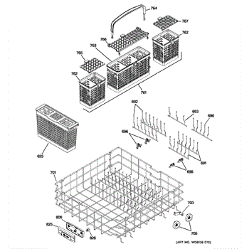 Parts for Ge PDW8900L00WW: 04 - Lower Rack Assembly Parts