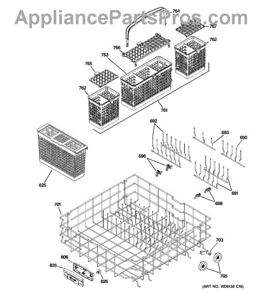 The Silverware Basket is an OEM component specifically designed for GE dishwashers. It provides a separator zone to organize knives, forks, and spoons for effective cleaning. Plastic baskets endure exposure to hot water and chemicals with each cycle. Over years of usage, the plastic material can weaken or crack.