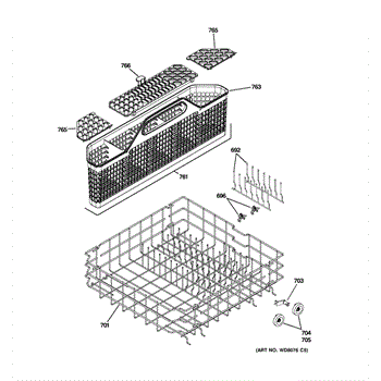 Parts for Ge PDW9200J00BB: 04 - Lower Rack Assembly Parts