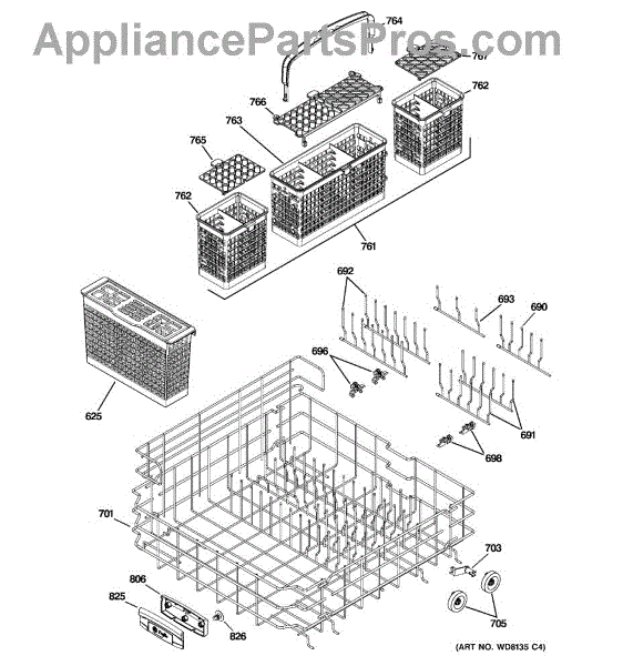 The Silverware Basket is an OEM component specifically designed for GE dishwashers. It provides a separator zone to organize knives, forks, and spoons for effective cleaning. Plastic baskets endure exposure to hot water and chemicals with each cycle. Over years of usage, the plastic material can weaken or crack.