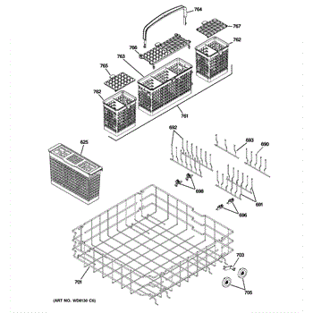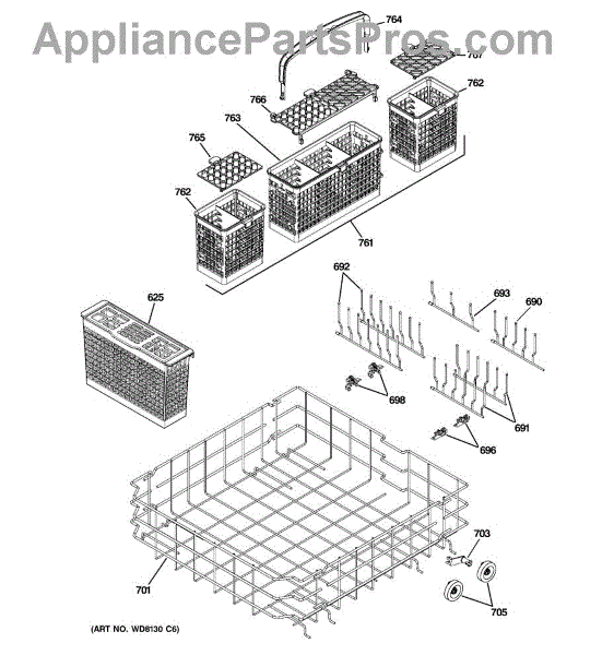Parts for Ge PDW9800N20BB: 04 - Lower Rack Assembly Parts