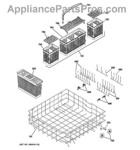Parts for Ge PDW9880J10SS: 04 - Lower Rack Assembly Parts