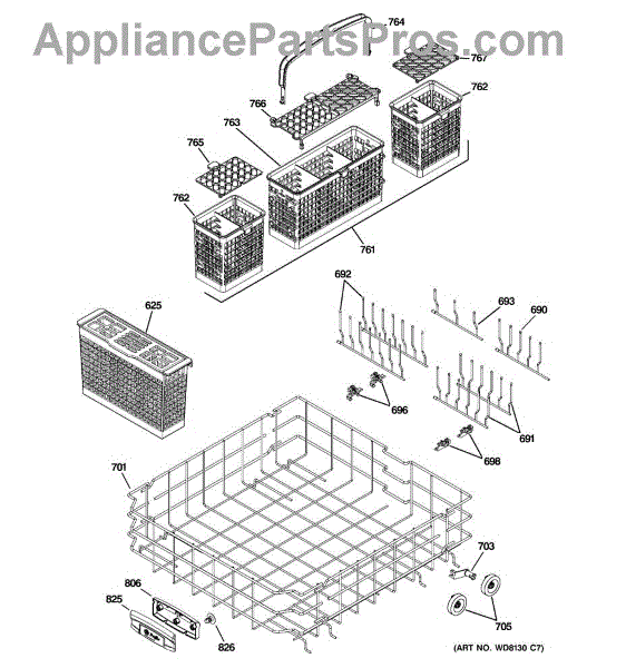 The Silverware Basket is an OEM component specifically designed for GE dishwashers. It provides a separator zone to organize knives, forks, and spoons for effective cleaning. Plastic baskets endure exposure to hot water and chemicals with each cycle. Over years of usage, the plastic material can weaken or crack.