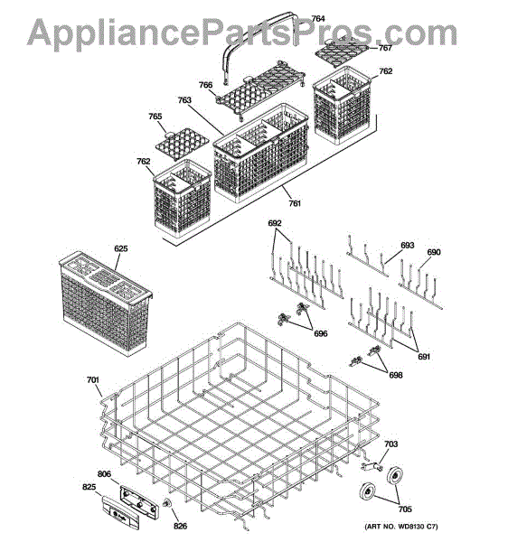 The Silverware Basket is an OEM component specifically designed for GE dishwashers. It provides a separator zone to organize knives, forks, and spoons for effective cleaning. Plastic baskets endure exposure to hot water and chemicals with each cycle. Over years of usage, the plastic material can weaken or crack.