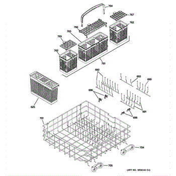 The Silverware Basket is an OEM component specifically designed for GE dishwashers. It provides a separator zone to organize knives, forks, and spoons for effective cleaning. Plastic baskets endure exposure to hot water and chemicals with each cycle. Over years of usage, the plastic material can weaken or crack.