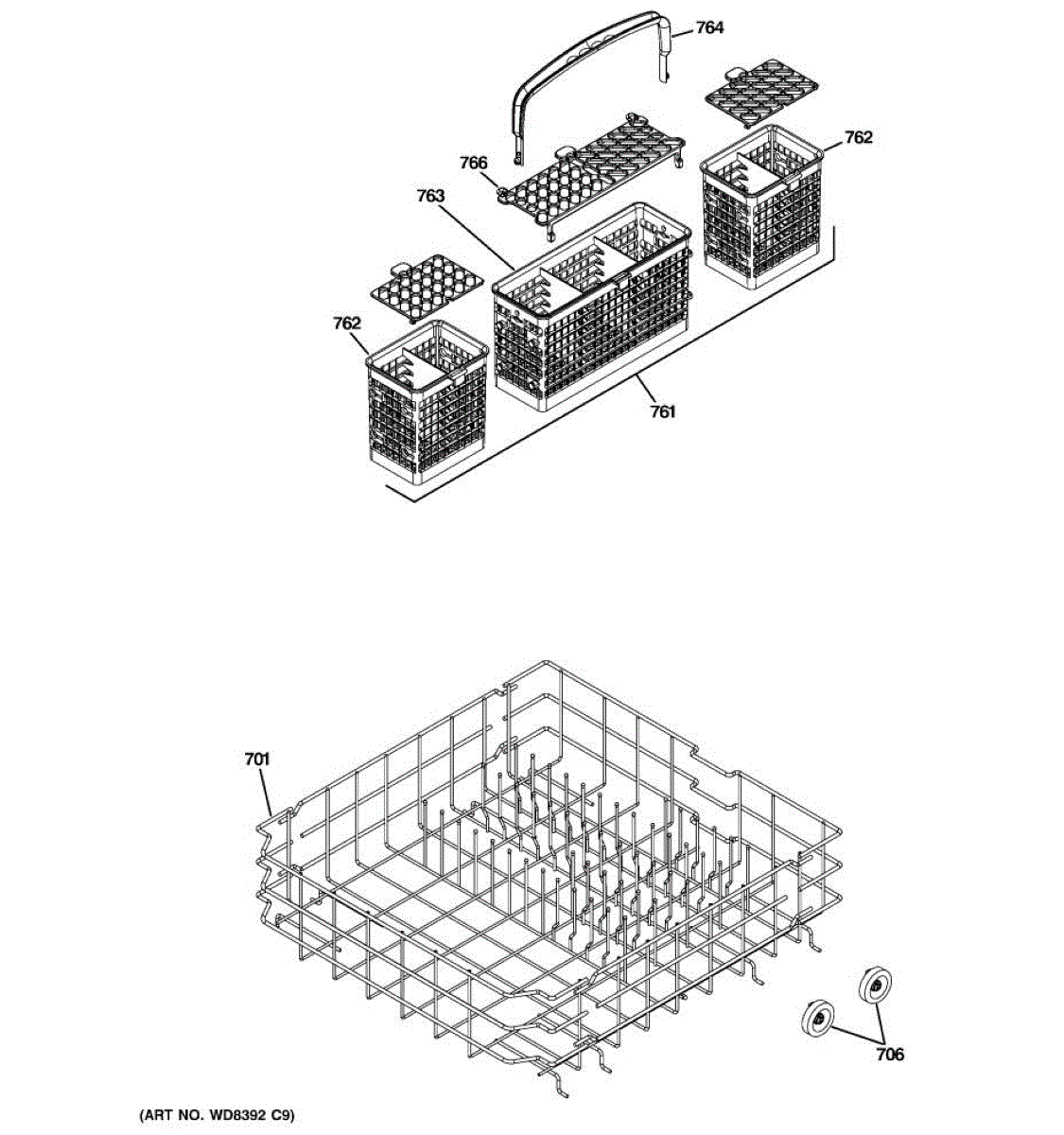 Replacement silverware basket for dishwashers. Holds and organizes utensils during wash cycles. Replace if cracked, broken, or mesh bottom damaged.