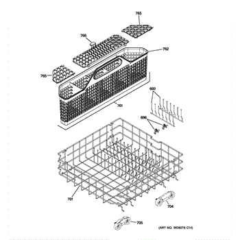 The Lower Rack Assembly is an OEM part for GE dishwashers. It provides the lower-level storage for dishes, pots, pans, and utensils during the wash cycle, allowing water and detergent to reach all items effectively.