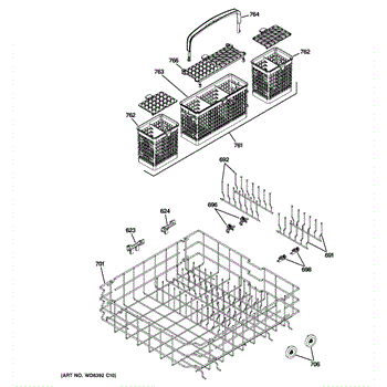 The Silverware Basket Assembly is an OEM replacement part for GE dishwashers. It is a specialized basket designed to hold and secure utensils, flatware, and other small items during the dishwashing cycle. It is important to note that if your original basket was a 3-piece design, the manufacturer has updated this part to a more convenient 1-piece design