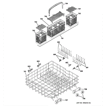 The Silverware Basket Assembly is an OEM replacement part for GE dishwashers. It is a specialized basket designed to hold and secure utensils, flatware, and other small items during the dishwashing cycle. It is important to note that if your original basket was a 3-piece design, the manufacturer has updated this part to a more convenient 1-piece design