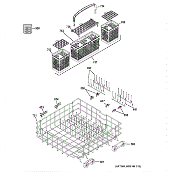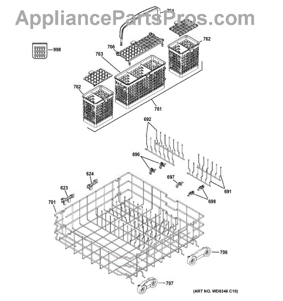The Silverware Basket Assembly is an OEM replacement part for GE dishwashers. It is a specialized basket designed to hold and secure utensils, flatware, and other small items during the dishwashing cycle. It is important to note that if your original basket was a 3-piece design, the manufacturer has updated this part to a more convenient 1-piece design