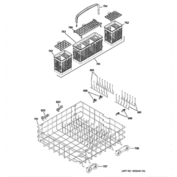 The Silverware Basket Assembly is an OEM replacement part for GE dishwashers. It is a specialized basket designed to hold and secure utensils, flatware, and other small items during the dishwashing cycle. It is important to note that if your original basket was a 3-piece design, the manufacturer has updated this part to a more convenient 1-piece design