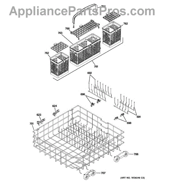 Parts for Ge PDWT480V50SS: 04 - Lower Rack Assembly Parts