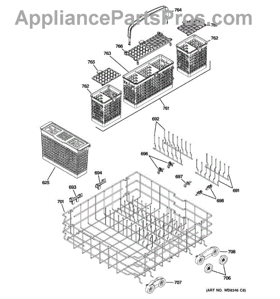 Parts for Ge PDWT500V50WW: 04 - Lower Rack Assembly Parts