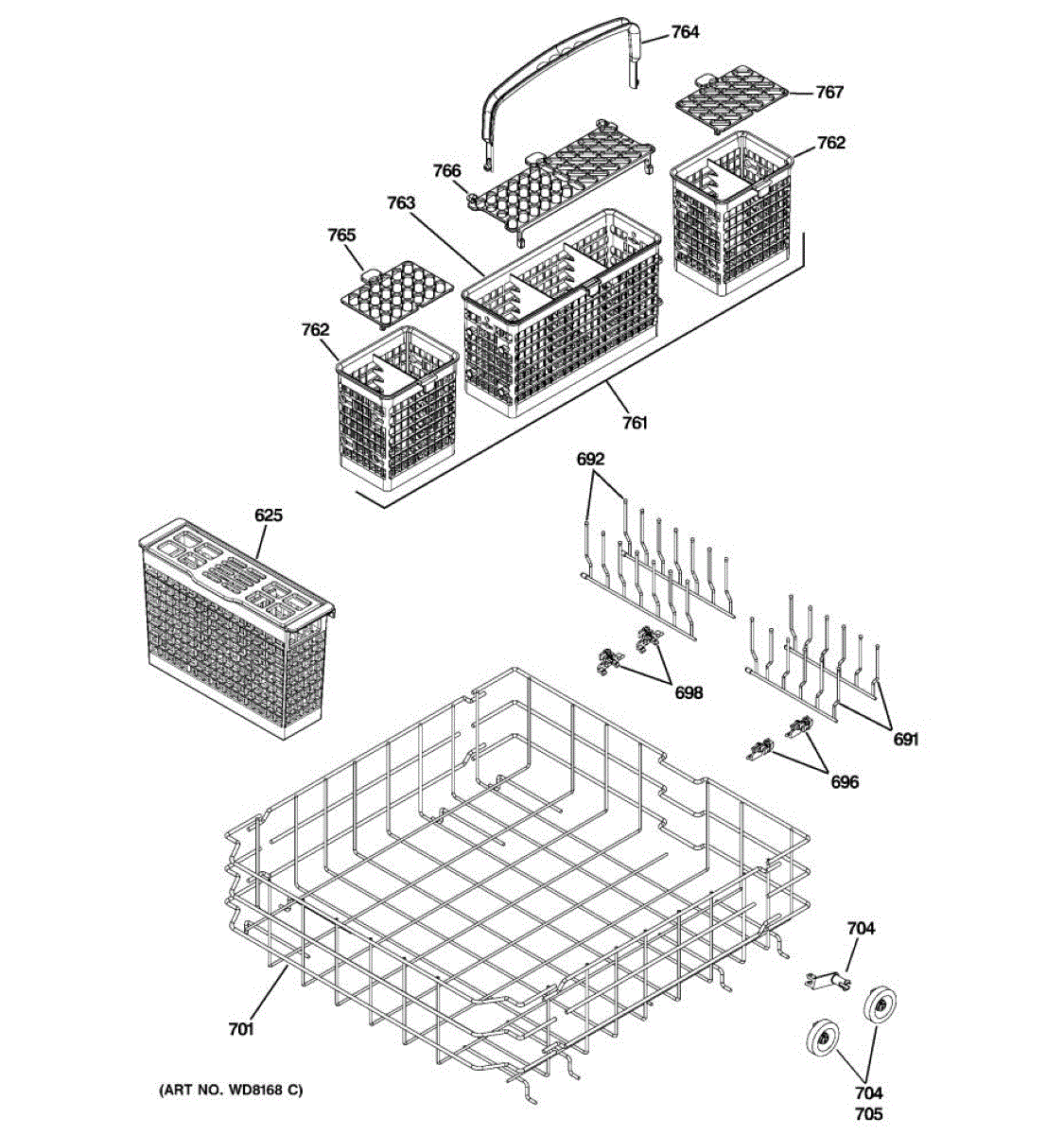 Replacement silverware basket for your dishwasher. Organizes utensils during wash cycles. Order if your original basket is cracked, melted, or broken.