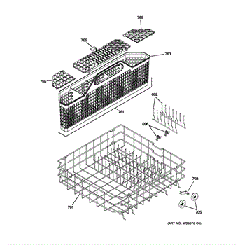 The Silverware Basket is an OEM part for GE dishwashers that is responsible for holding and organizing silverware for washing, this basket ensures that utensils are effectively cleaned and maintained. The basket measures about: 3 inches wide, 9 inches high, 19 inches deep. For the seven-piece silverware basket, order part number WD28X24469.