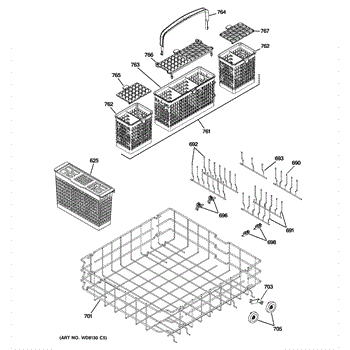 The Silverware Basket Assembly is an OEM replacement part for GE dishwashers. It is a specialized basket designed to hold and secure utensils, flatware, and other small items during the dishwashing cycle. It is important to note that if your original basket was a 3-piece design, the manufacturer has updated this part to a more convenient 1-piece design