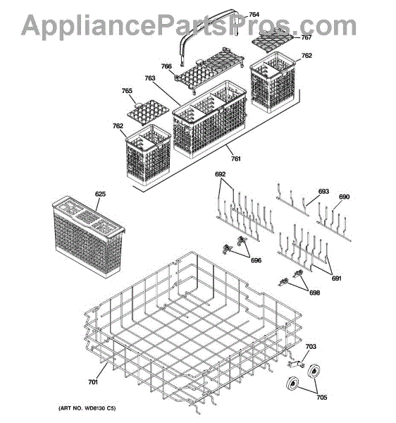 The Silverware Basket is an OEM component specifically designed for GE dishwashers. It provides a separator zone to organize knives, forks, and spoons for effective cleaning. Plastic baskets endure exposure to hot water and chemicals with each cycle. Over years of usage, the plastic material can weaken or crack.