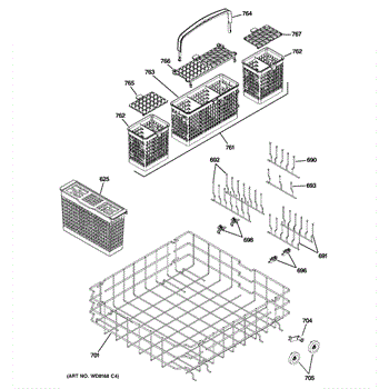 The Silverware Basket is an OEM component specifically designed for GE dishwashers. It provides a separator zone to organize knives, forks, and spoons for effective cleaning. Plastic baskets endure exposure to hot water and chemicals with each cycle. Over years of usage, the plastic material can weaken or crack.