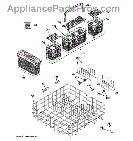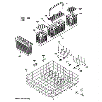 The Silverware Basket is an OEM component specifically designed for GE dishwashers. It provides a separator zone to organize knives, forks, and spoons for effective cleaning. Plastic baskets endure exposure to hot water and chemicals with each cycle. Over years of usage, the plastic material can weaken or crack.