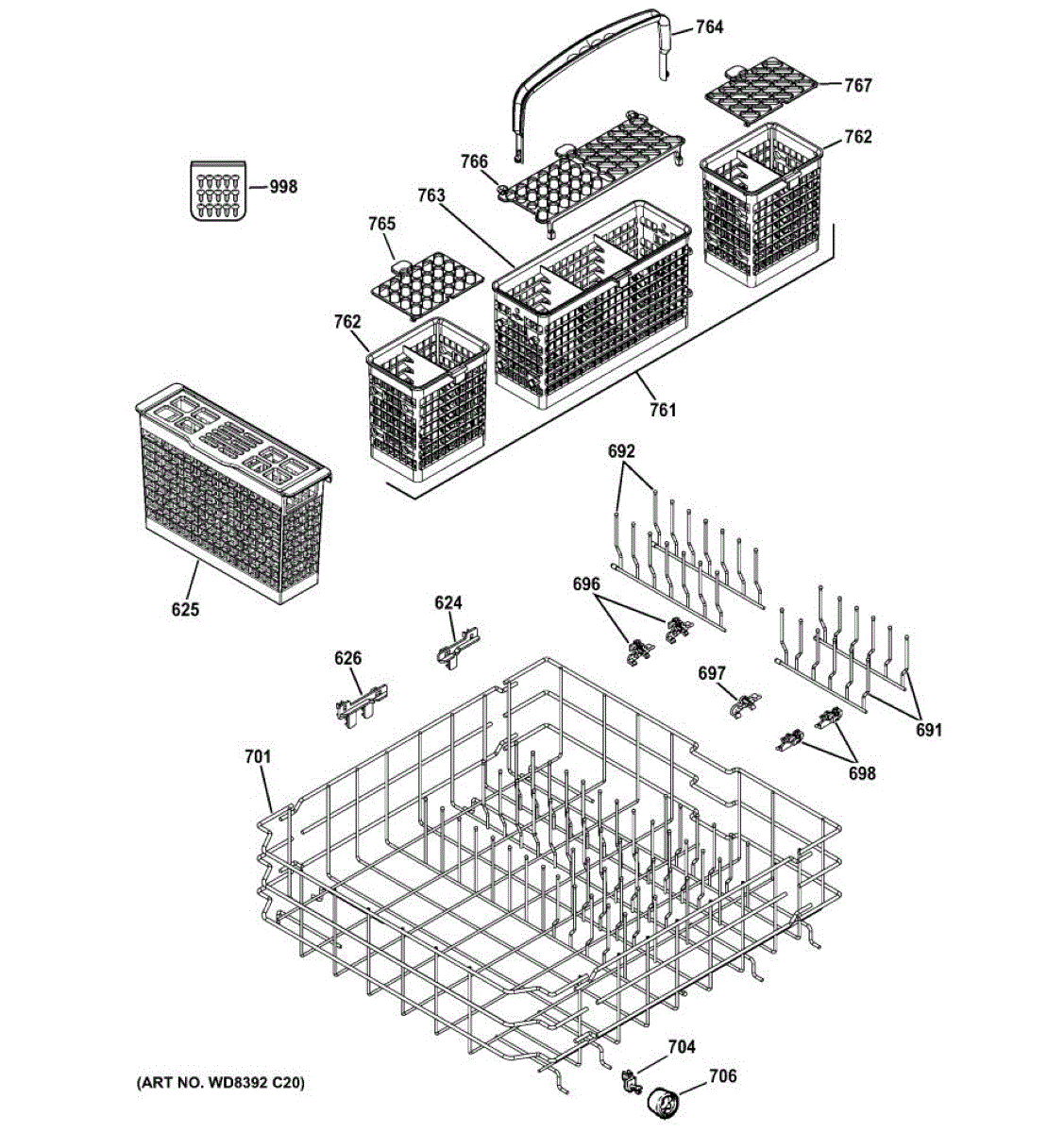 Replacement silverware basket for your dishwasher. Organizes utensils during wash cycles. Order if your original basket is cracked, melted, or broken.