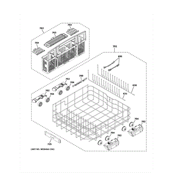 The Silverware Basket Assembly is an OEM replacement part for GE dishwashers. This basket is designed to hold and organize silverware and utensils during the dishwashing cycle. It ensures that utensils are properly spaced and positioned to receive optimal cleaning, preventing them from nesting together and ensuring thorough water circulation.