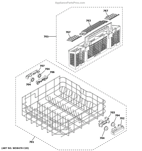 Parts for Ge GDT645SGN2WW: Lower Rack Assembly Parts
