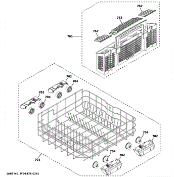 The Silverware Basket Assembly is an OEM replacement part for GE dishwashers. It is a specialized basket designed to hold and secure utensils, flatware, and other small items during the dishwashing cycle. It is important to note that if your original basket was a 3-piece design, the manufacturer has updated this part to a more convenient 1-piece design