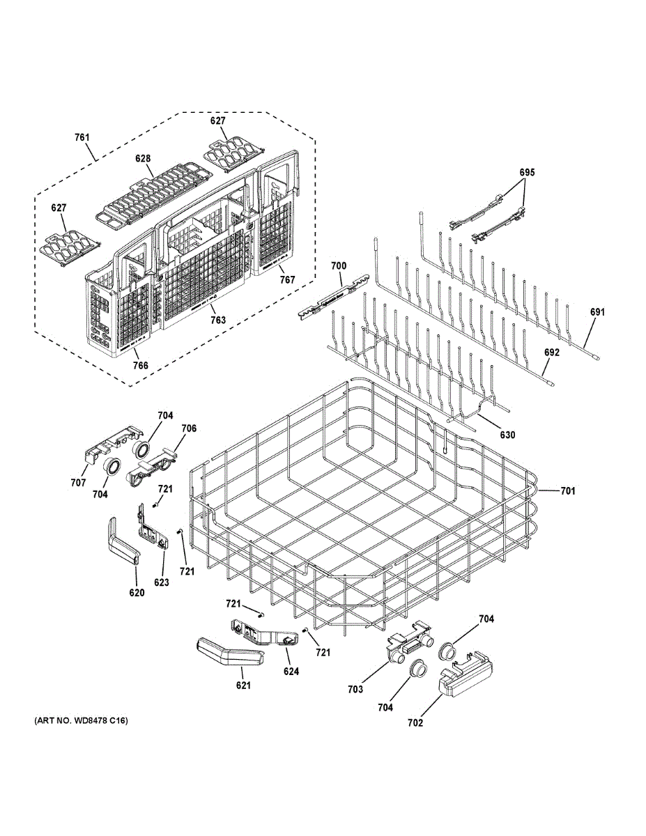 Replacement silverware basket for dishwasher lower rack. Holds and organizes utensils during wash cycles. Order if your basket is cracked or broken.
