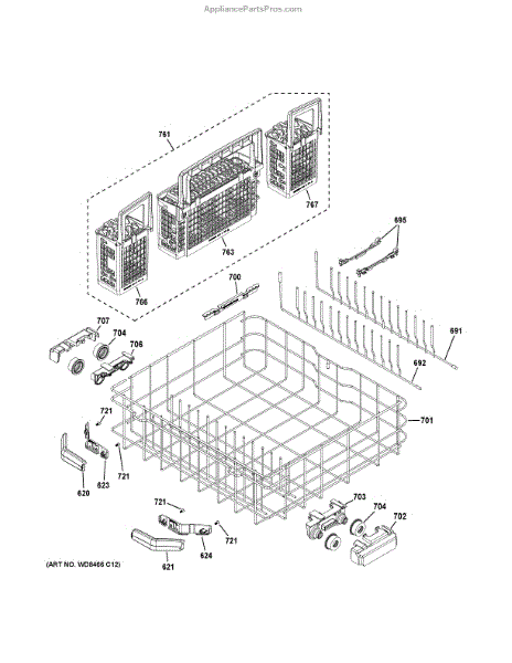 Replacement silverware basket for dishwasher lower rack. Holds and organizes utensils during wash cycles. Order if your basket is cracked or broken.