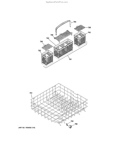 Parts for Ge GHDT158V50ES: Lower Rack Assembly Parts