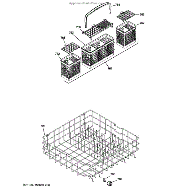 The Silverware Basket Assembly is an OEM replacement part for GE dishwashers. It is a specialized basket designed to hold and secure utensils, flatware, and other small items during the dishwashing cycle. It is important to note that if your original basket was a 3-piece design, the manufacturer has updated this part to a more convenient 1-piece design
