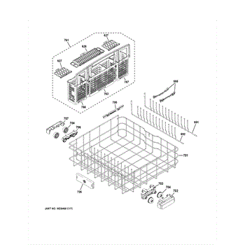 Parts for Ge PDT750SMF1ES: Lower Rack Assembly Parts