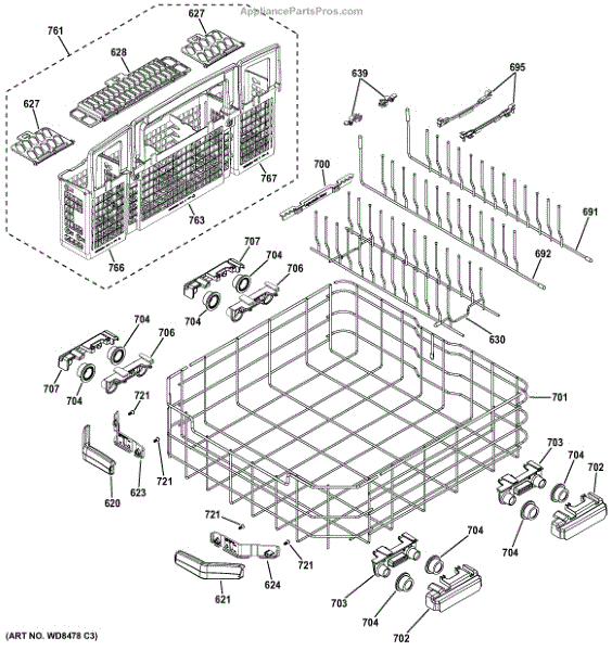 Parts for Ge PDT760SIF5II: Lower Rack Assembly Parts