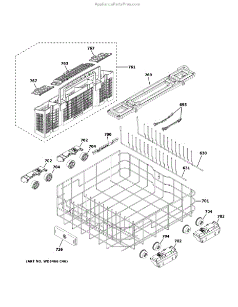 Parts for Ge PDT775SBN6TS: Lower Rack Assembly Parts