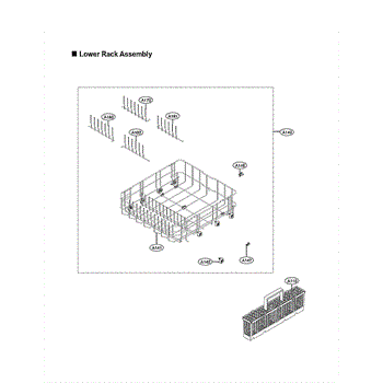 The Lower Rack Assembly is an OEM part for LG dishwashers. It holds and organizes dishes, utensils, and cookware during the wash cycle. This lower rack is designed to accommodate various dish sizes and shapes, allowing for efficient cleaning and optimal water circulation.