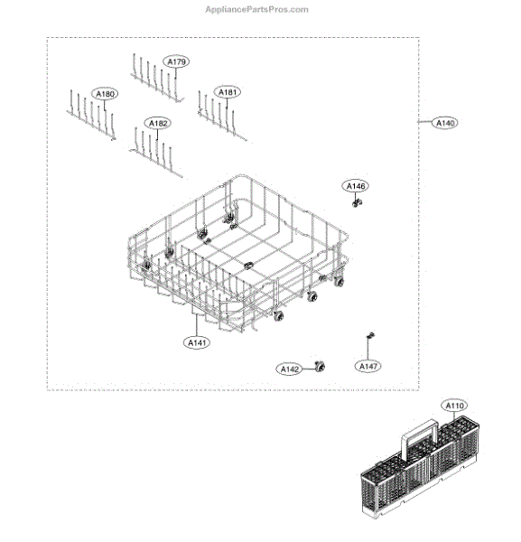 The Rack Assembly is an OEM part for LG dishwashers. It is the rack that holds dishes, glassware, utensils, and cookware during the wash cycle.