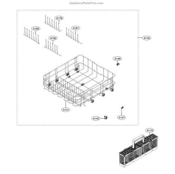 The Rack Assembly is an OEM part for LG dishwashers. It is the rack that holds dishes, glassware, utensils, and cookware during the wash cycle.