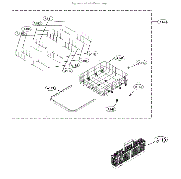 The Rack Assembly is an OEM part for LG dishwashers. It is the rack that holds dishes, glassware, utensils, and cookware during the wash cycle.