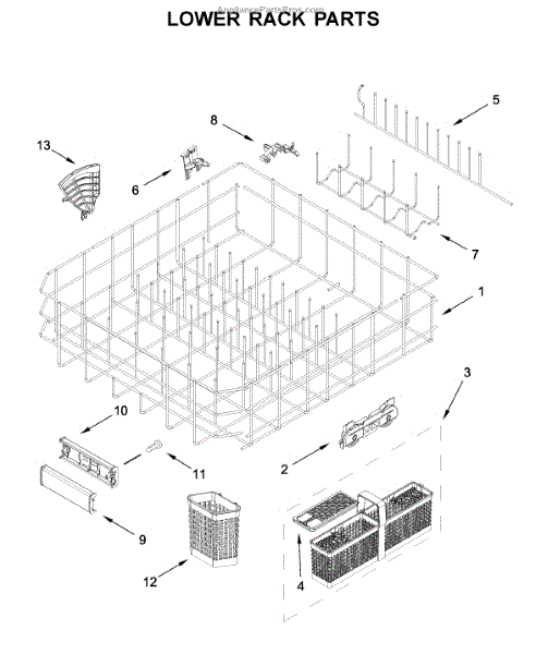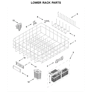 The Lower Dishrack is an OEM part for Whirlpool dishwashers. It provides space for arranging and securely holding your dishes during the dishwashing cycle.