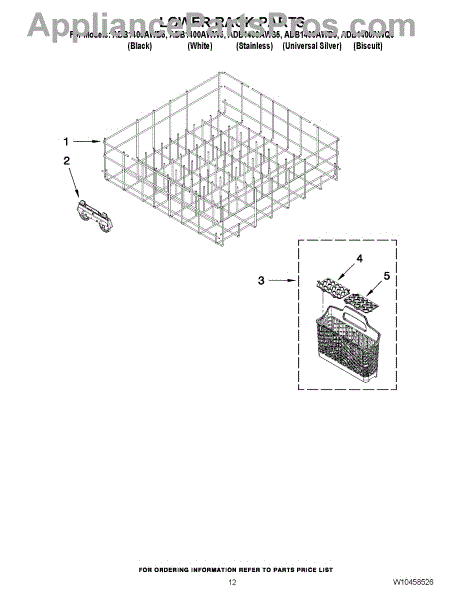 Parts for Amana ADB1400AWQ5: 10 - Lower Rack Parts
