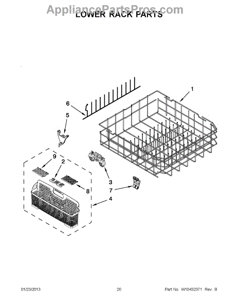 Parts for Jenn-Air JDB3650AWY5: 10 - Lower Rack Parts