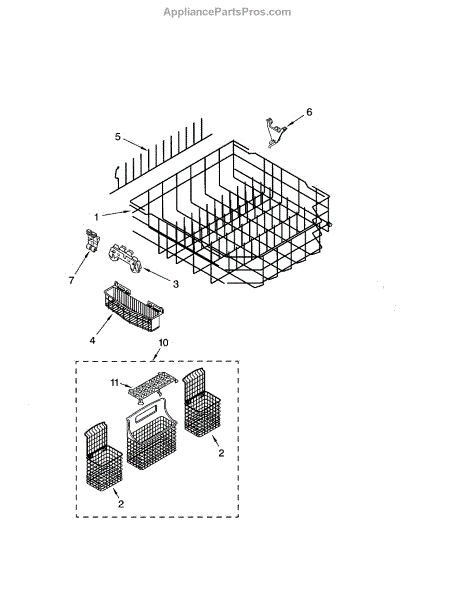 Replacement silverware basket for your dishwasher's lower rack. Organizes forks, knives, and spoons during wash cycles. Needed when original is cracked or broken.