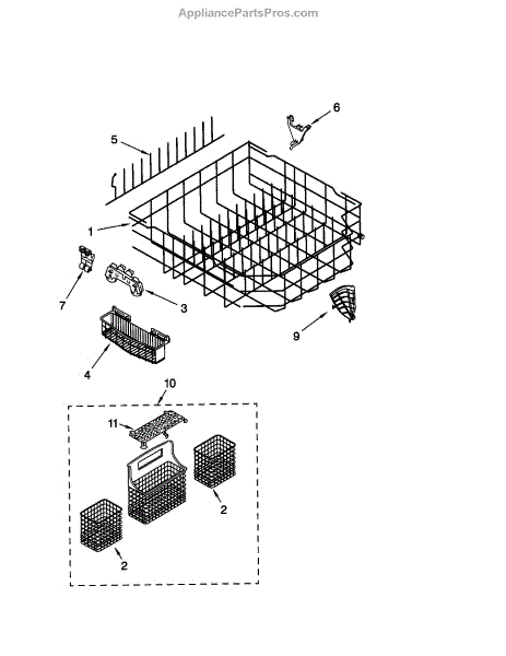 Replacement silverware basket for your dishwasher's lower rack. Organizes forks, knives, and spoons during wash cycles. Needed when original is cracked or broken.