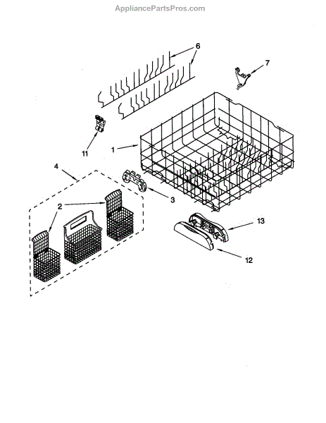 Replacement silverware basket for dishwashers. Holds utensils securely during wash cycles. Replace if cracked, broken, or has holes causing items to fall.
