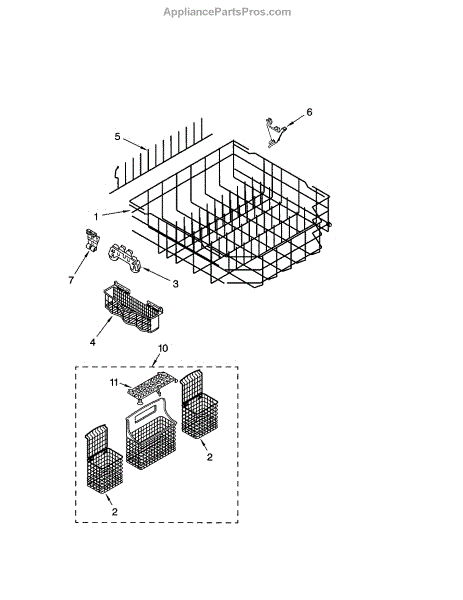 Replacement silverware basket for dishwashers. Installs in lower rack to hold utensils during wash cycles. Order when original is cracked or missing.