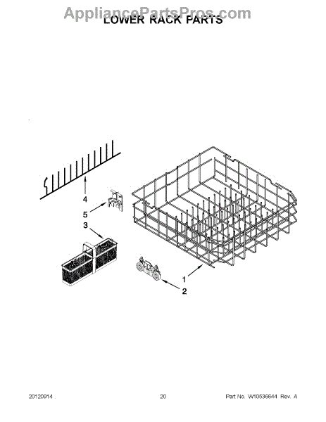 Replacement lower dishrack for dishwashers. Holds dishes, pots, and pans during wash cycles. Replace if cracked, rusted, or tines are broken or missing.