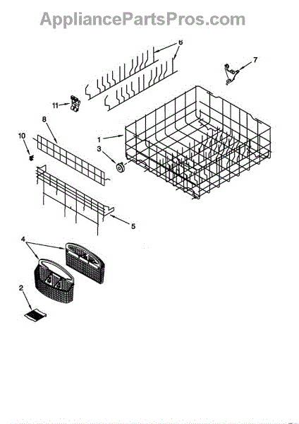 Note: There are four wheel assemblies includes with this rack. The flexible tine rows are not included. This is a lower dishrack assembly for a dishwasher. This part holds the dishes during the washing and drying cycles. Note that this is only the lower dishrack assembly and the upper dishrack assembly is sold separately. Over time, the lower dishrack assembly may begin to rust or the coating may wear off. It is also possible that sections of the part could break due to degradation over time. If this happens, the entire lower dishrack assembly will need to be replaced. The lower dishrack assembly is compatible with dishwashers that are manufactured by the Kenmore, KitchenAid, and Whirlpool brands. It comes straight from the manufacturer and is sold individually. It's a genuine, high-quality, and durable OEM part.