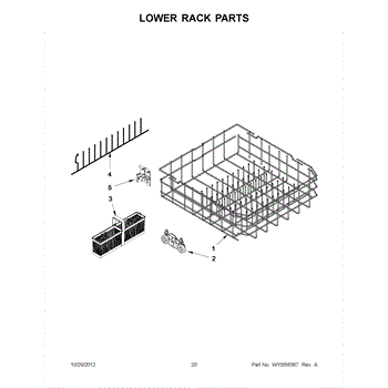 Parts for Kitchenaid KUDE20IXWH9: 10 - Lower Rack Parts