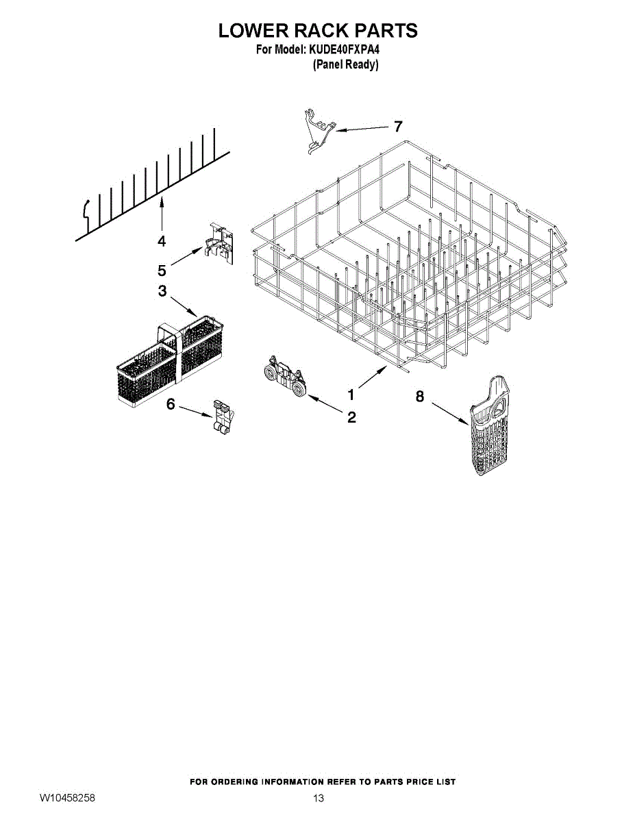 Replacement lower dishrack for dishwashers. Holds dishes, pots, and pans during wash cycles. Replace if cracked, rusted, or tines are broken or missing.