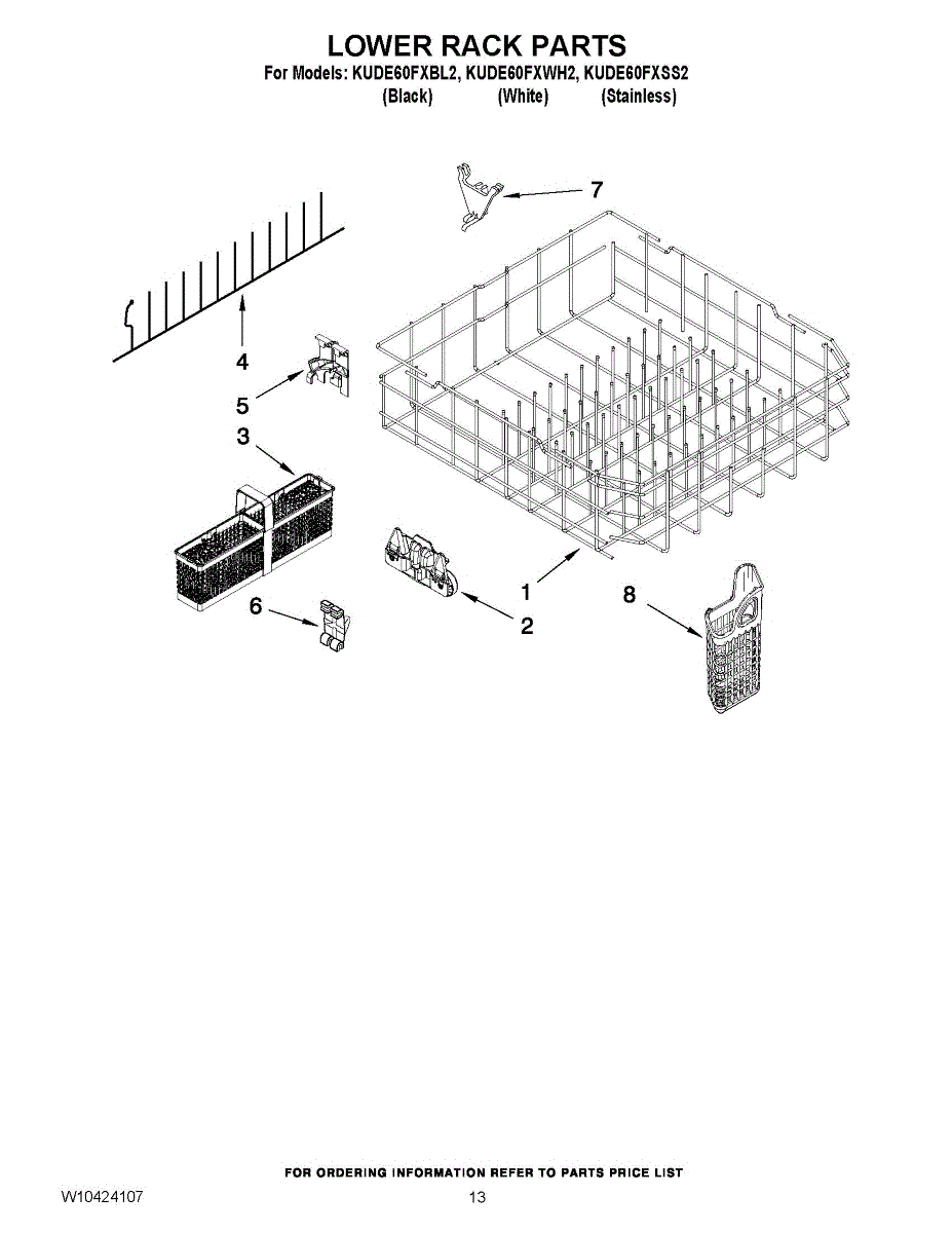 Replacement lower dishrack for dishwashers. Holds dishes, pots, and pans during wash cycles. Replace if cracked, rusted, or tines are broken or missing.